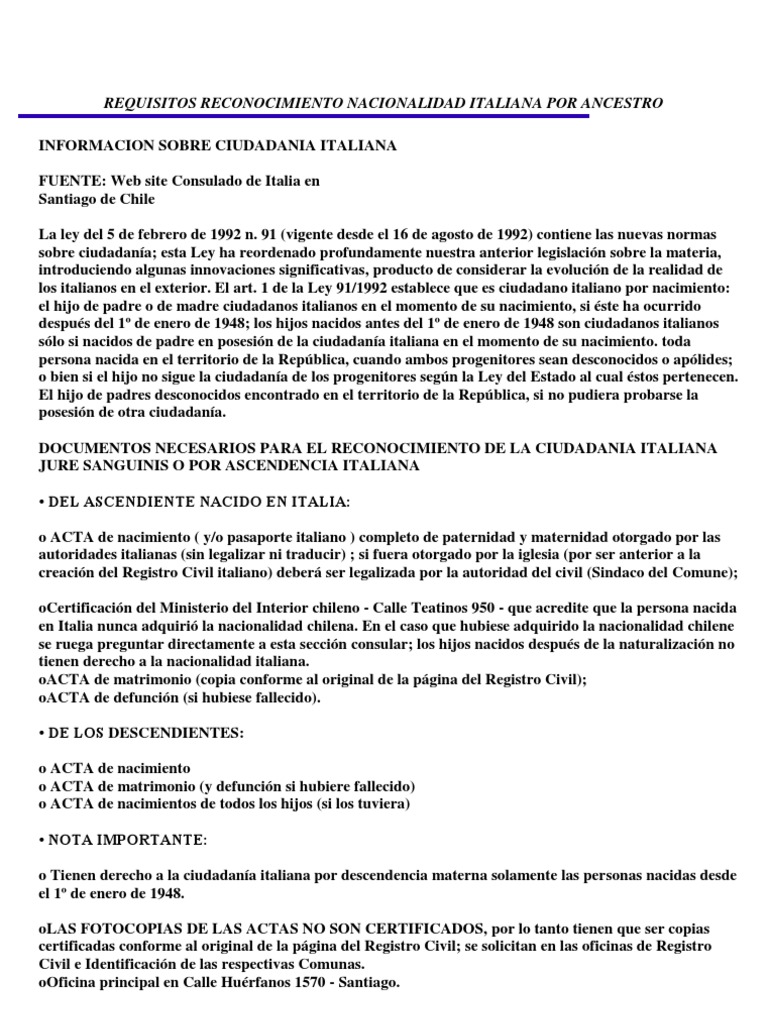Requisitos Reconocimiento Nacionalidad Italiana Por Ancestro Divorcio Principios Eticos Prueba Gratuita De 30 Dias Scribd
